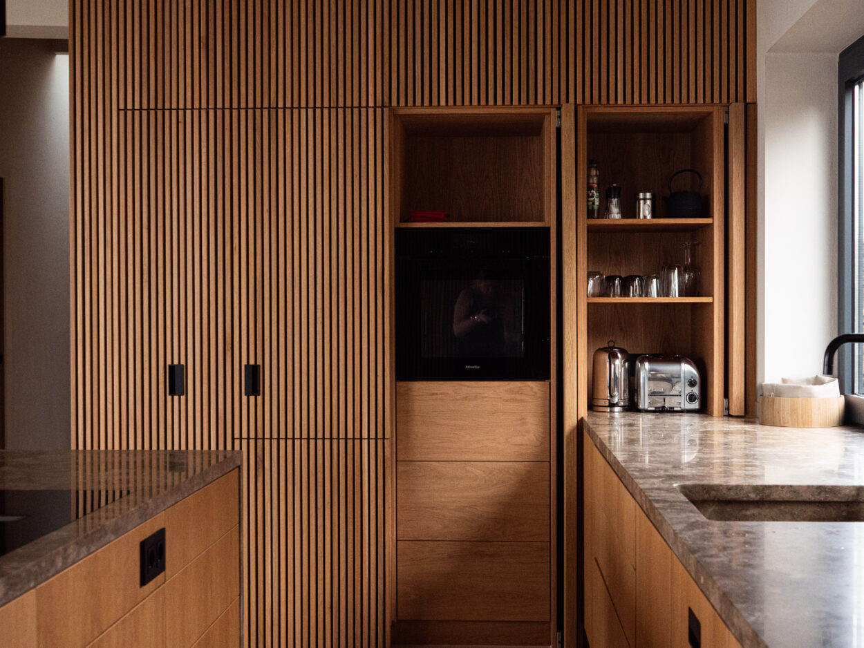 Interieur & Genuss: Deckenhängender Kamin, Tischler-Küche, Siebträger, Weinkühler & Kunst (G. Cappelli)